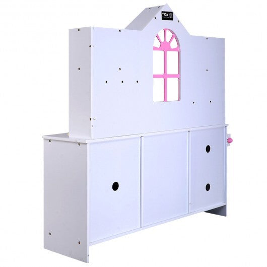 Specifications: Color: White & Pink Material: MDF + Pinewood Overall dimension: 41.7" x 11.8" x 42.1" The height from worktop to floor: 18.9"