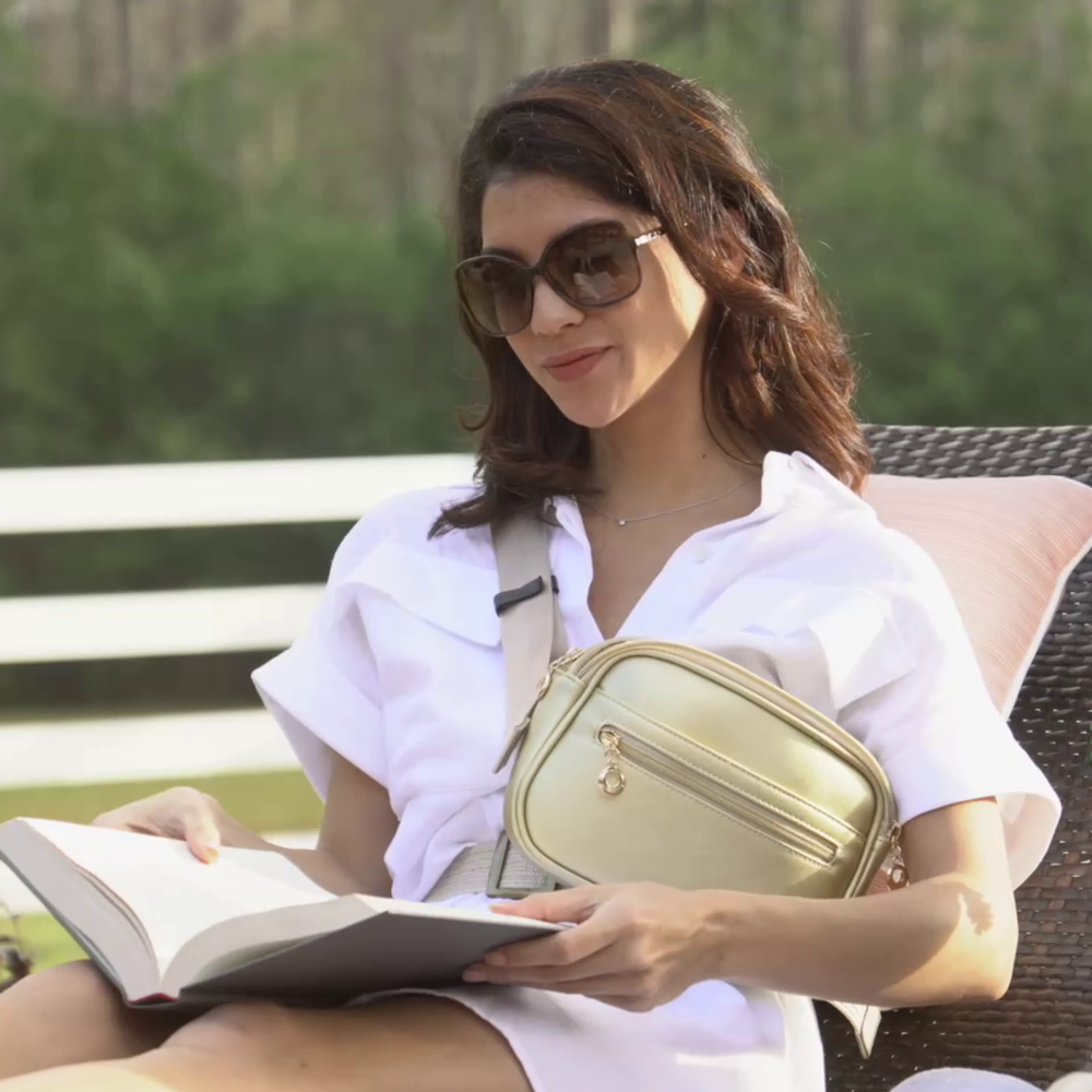 The Traveler's Treasure RFID Collection is designed for the avid traveler seeking both style and security. This sling purse/fanny pack features RFID-blocking technology to protect your personal information and a safety strap to attach your phone to tuck safely in the front pocket. As a versatile travels treasure with RFID sling purse, it provides the peace of mind needed for busy commutes or international trips. With ample storage and organized compartments, this purse is perfect for keeping your essentials safe and accessible during your adventures. For those looking for the ultimate crossbody travel purse with rfid protection, this bag offers the perfect blend of fashion and safety.
